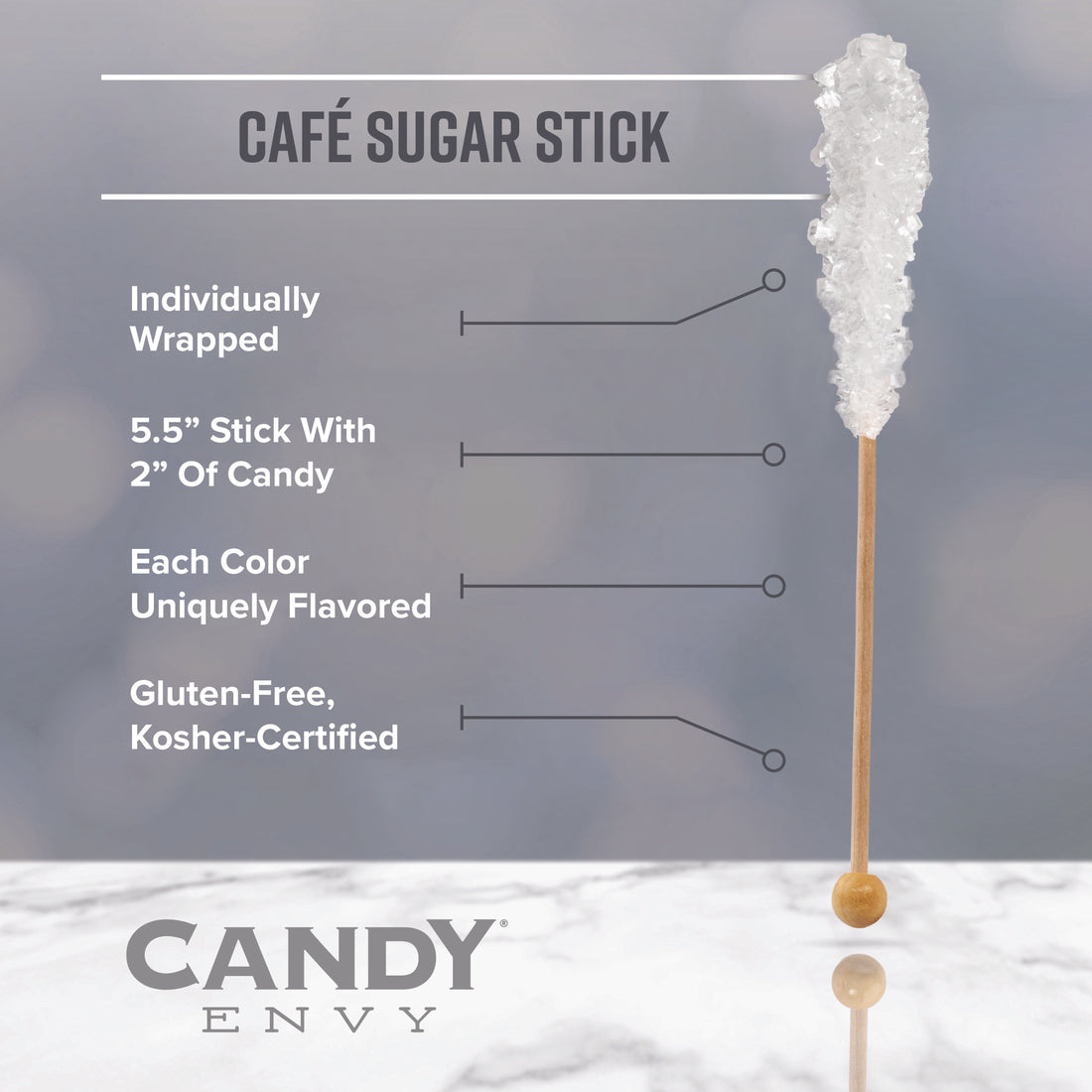- Individually Wrapped Rock Candy on a Stick available in three quantities
